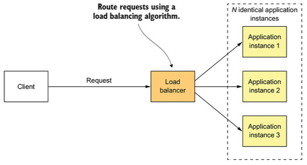Pendekatan ini adalah cara yang paling mudah untuk melakukan scaling pada aplikasi. Kita hanya perlu meletakkan server aplikasi di belakang load balancer, dan load balancer yang akan membagi traffic ke semua instances yang ada. Pendekatan ini biasanya dilakukan untuk melakukan scaling pada aplikasi monolith.