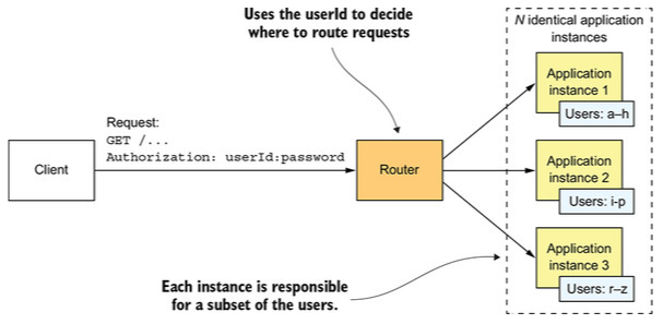 Router akan membagi traffic ke setiap server berdasarkan atribut yang telah ditentukan. Setiap server hanya bertanggung jawab untuk sebagian traffic yang mengandung atribut miliknya.
