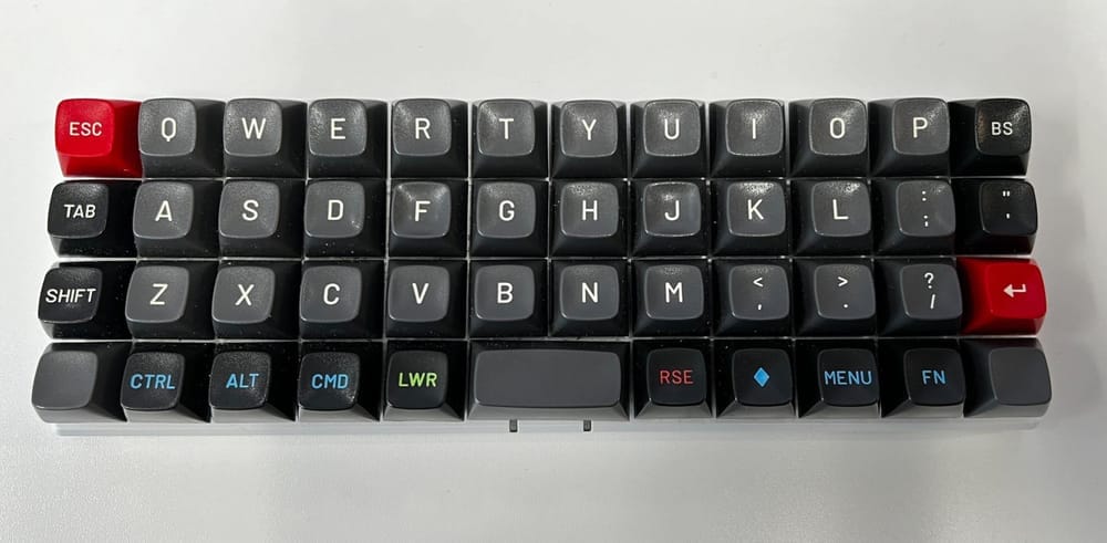 An ortholinear keyboard arranges keys in a uniform grid. All keys are aligned in straight lines instead of the staggered layout of traditional keyboards. This design aims to reduce wrist and finger strain by promoting a more natural typing position and allowing for quicker finger movement between keys. ↩︎